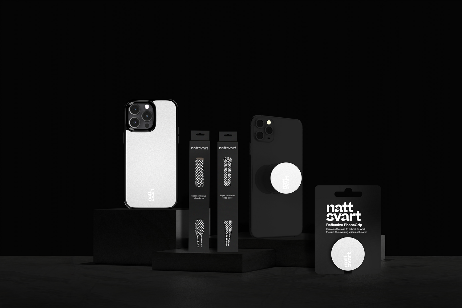 Our products, designed in Sweden, not only makes you shine in broad daylight. They also lights up the darkness, making the road to school, the early morning walk and the late night run much safer. So in short, it protects both you and your phone. Win win.